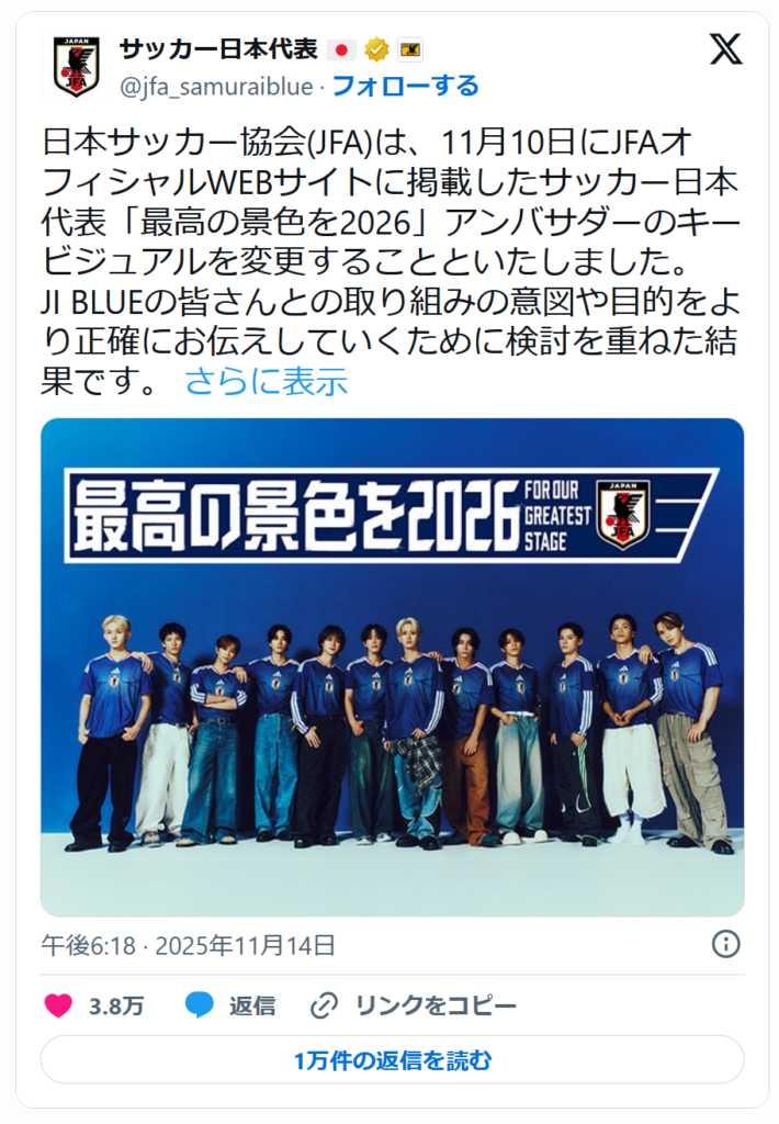 日本代表という象徴的な存在に対し、ファンがどんな思いを持っているのか──その積み重ねが、一つの画像をきっかけに噴き出した出来事でもあります。