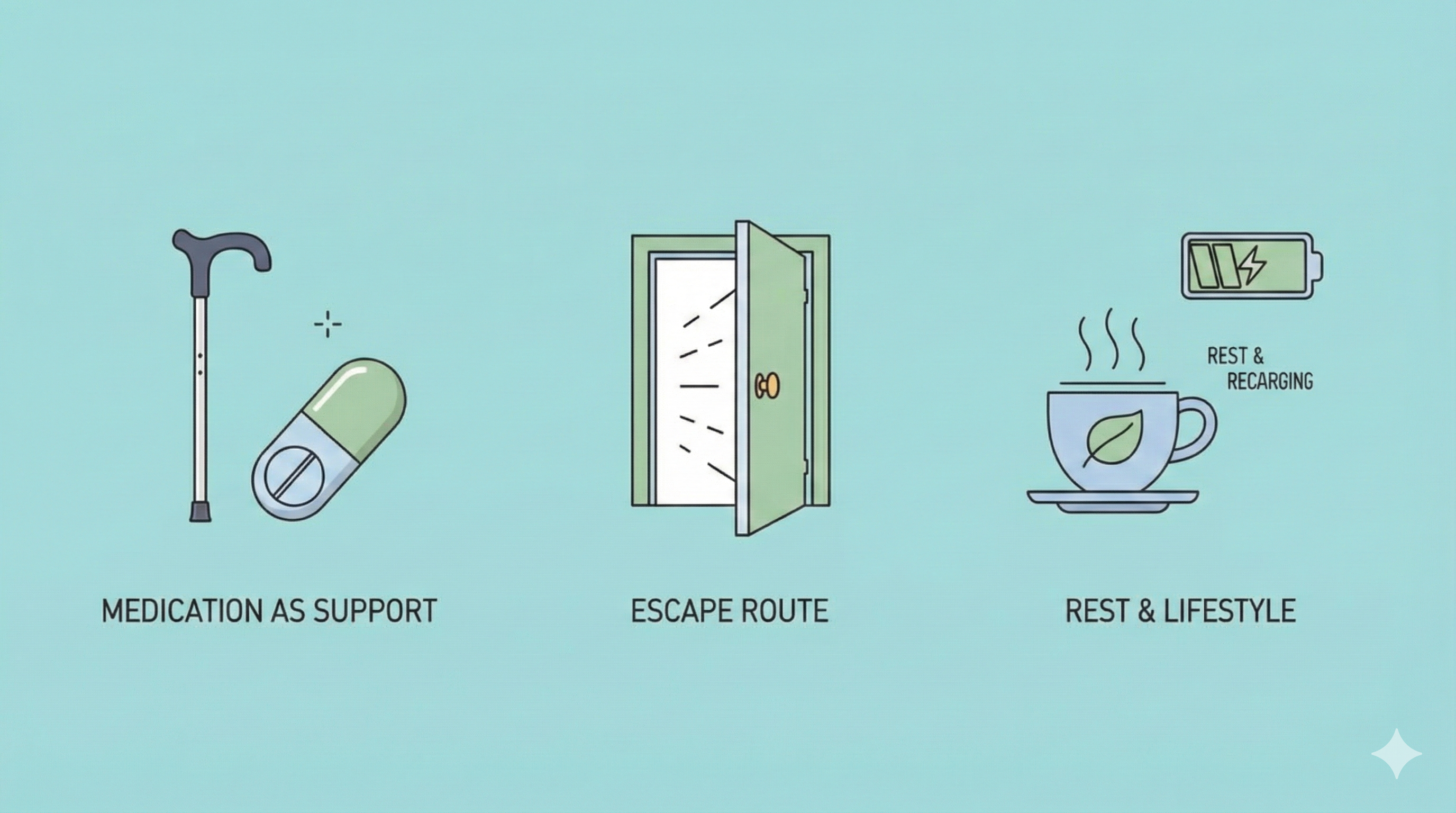 薬そのものがゴールというより、「社会生活を送るための杖」として位置づけるとよいでしょう。